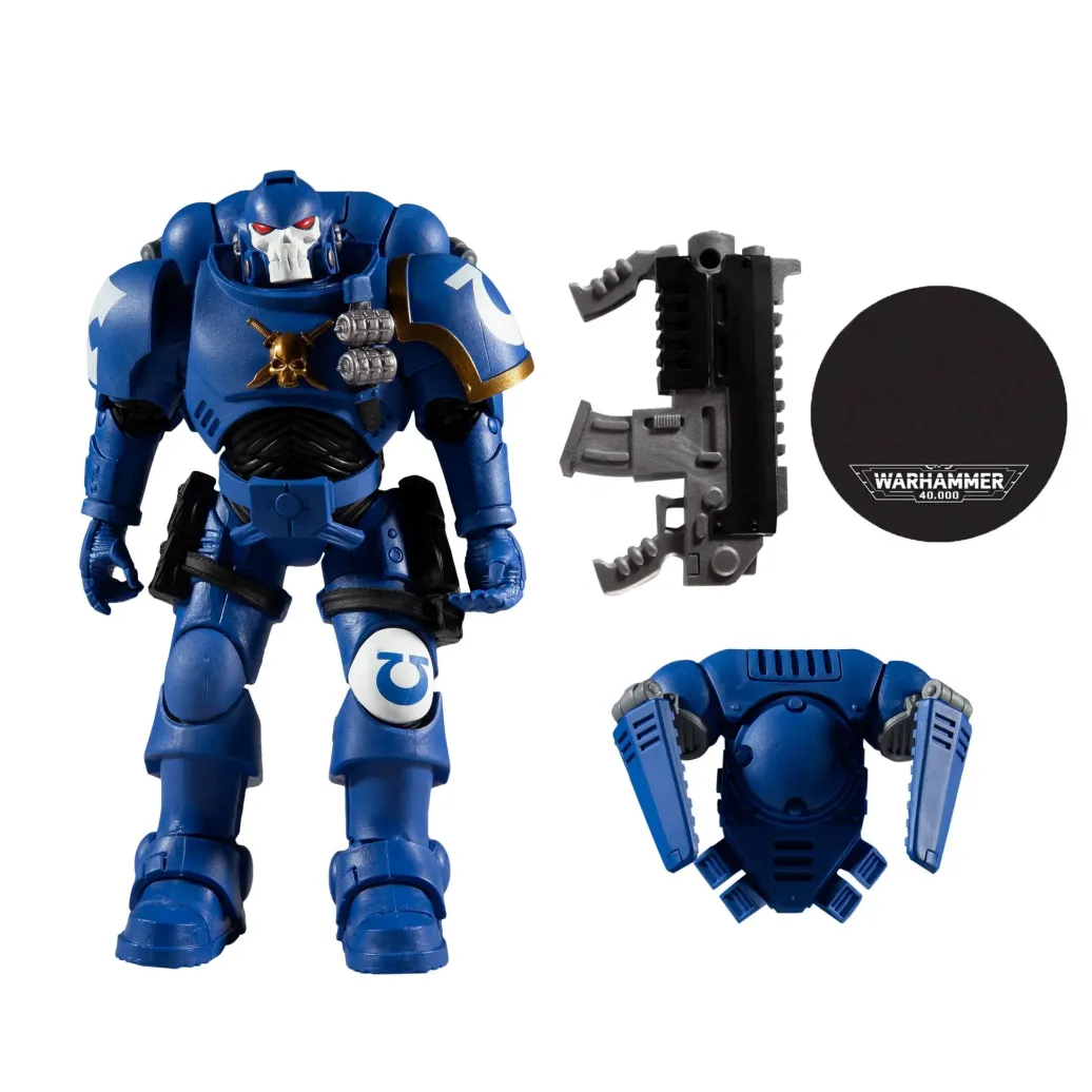 Zum Tabletop-Spiel Warhammer 40k kommt diese detailreiche, bewegliche Actionfigur. Sie ist ca. 18 cm groß und wird mit weiterem Zubehör und Base in einer bedruckten Fensterbox geliefert.