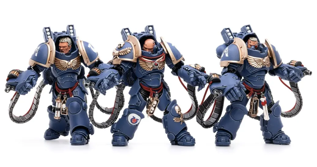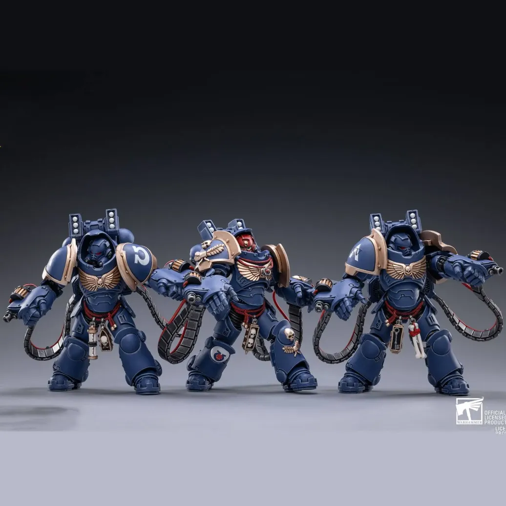 Zum Tabletop-Spiel "Warhammer 40k" kommt dieser Pack mit 3 detailreichen, beweglichen Actionfiguren. Sie sind ca. 12 cm groß und werden mit weiterem Zubehör geliefert.