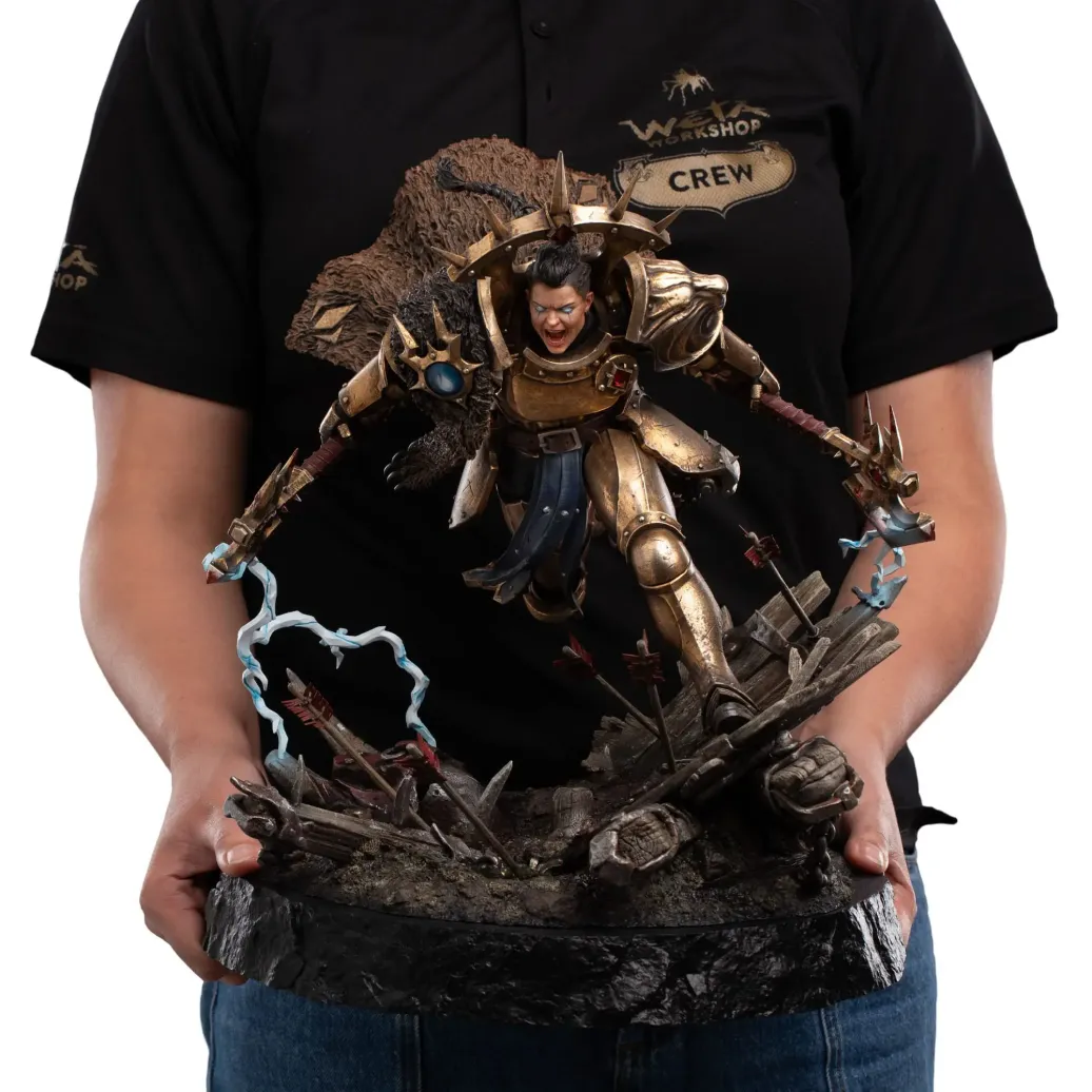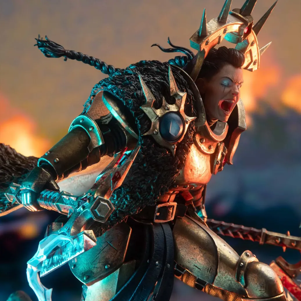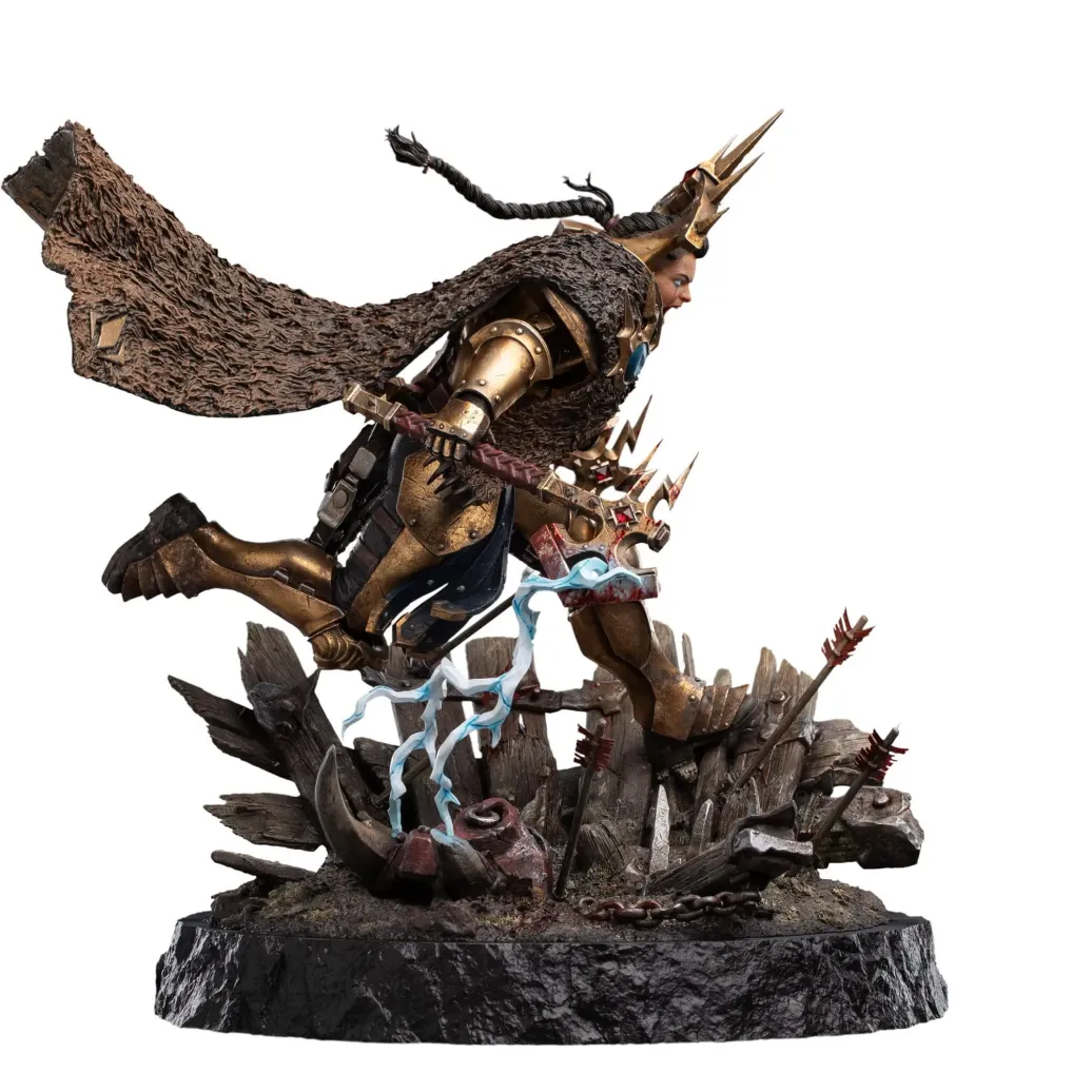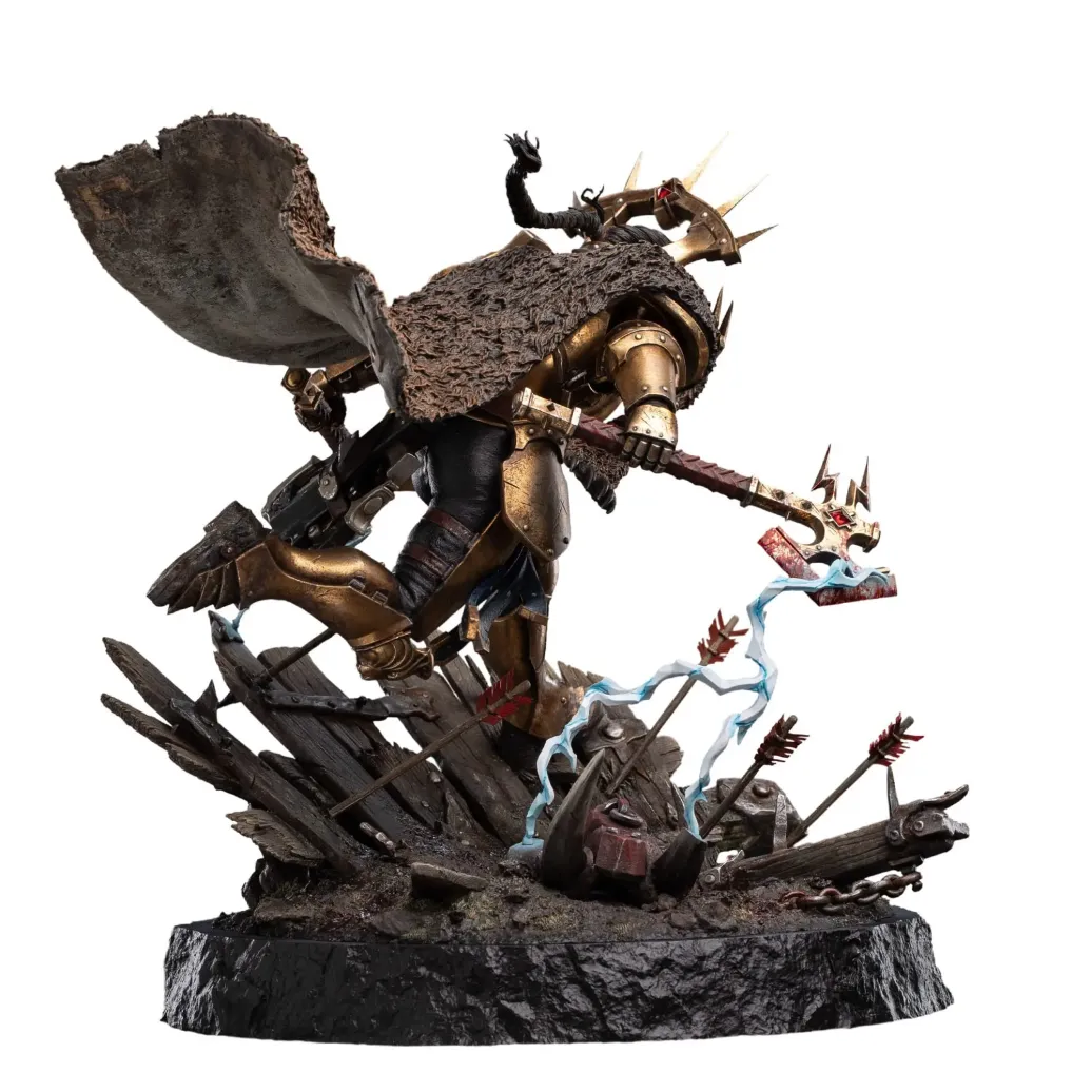 Zum Videospiel "Warhammer: Age of Sigmar" kommt diese großartige Statue aus hochwertigem Polystone. Sie ist ca. 34 cm x 40 cm x 39 cm groß und wird mit Austauschteilen geliefert, darunter ein Helm mit LED-Beleuchtung.
