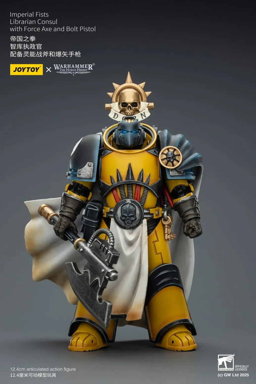 Zum Tabletop-Spiel "Warhammer Imperial FistsLegion" kommt diese detailreiche, bewegliche Actionfigur. Sie ist ca. 12 cm groß und wird mit weiterem Zubehör geliefert.