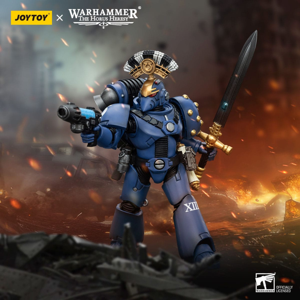 Zum Tabletop-Spiel "Warhammer The Horus Heresy" kommt diese detailreiche, bewegliche Actionfigur. Sie ist ca. 20 cm groß und wird mit weiterem Zubehör geliefert.