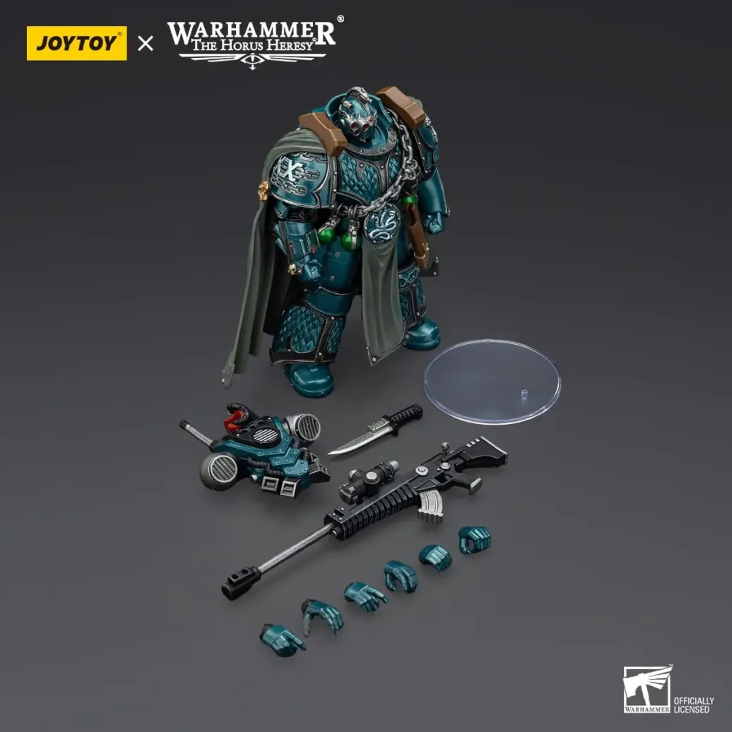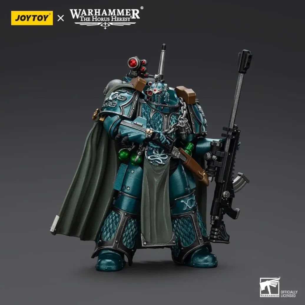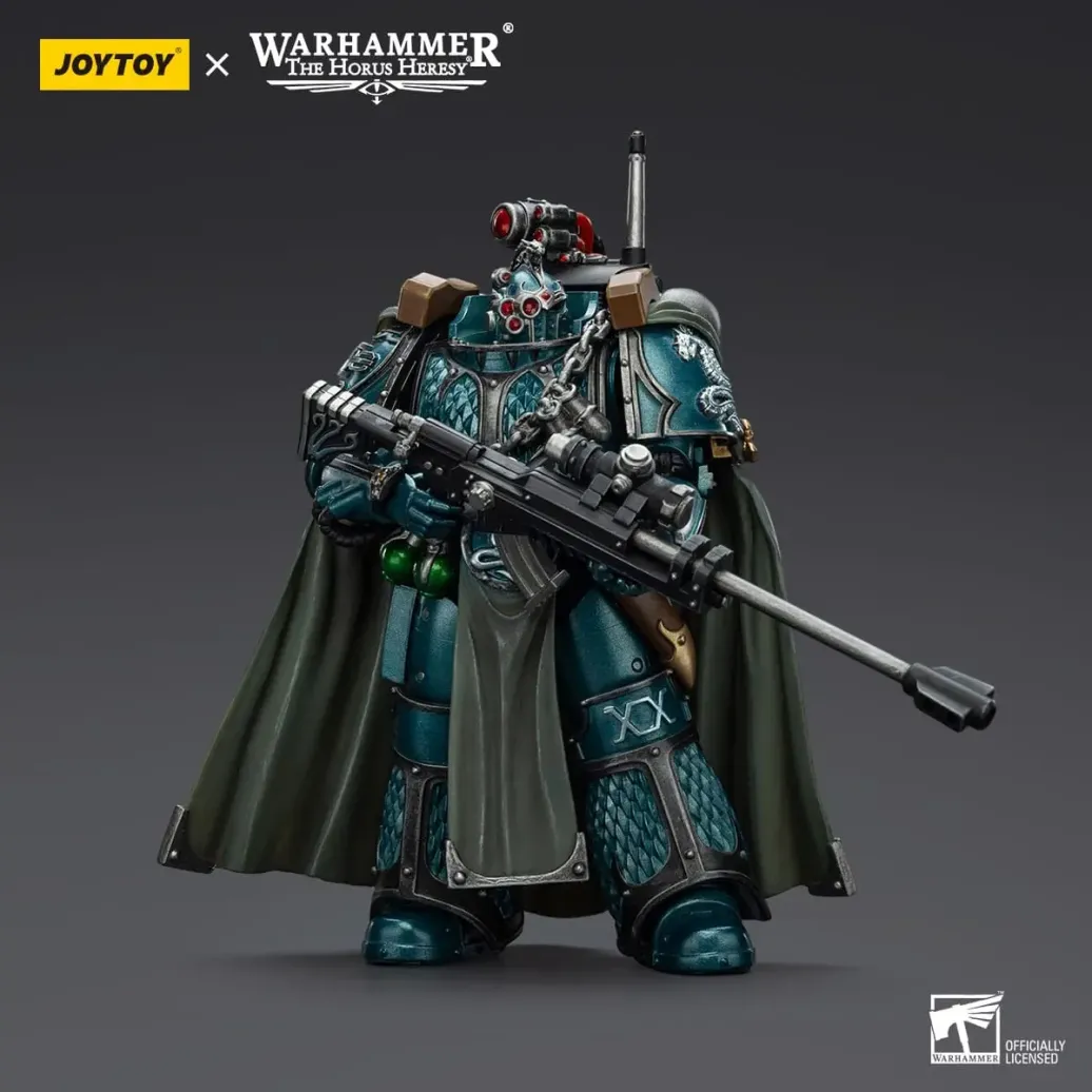 Zum Tabletop-Spiel "Warhammer The Horus Heresy" kommt diese detailreiche, bewegliche Actionfigur. Sie ist ca. 20 cm groß und wird mit weiterem Zubehör geliefert.