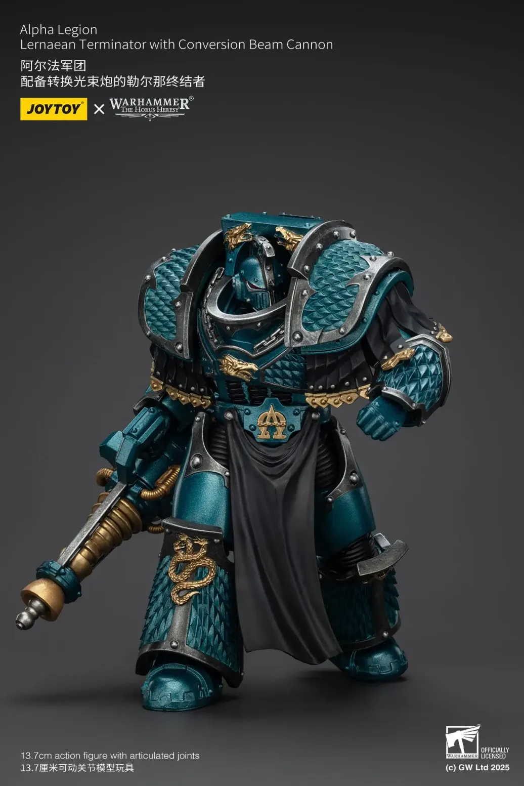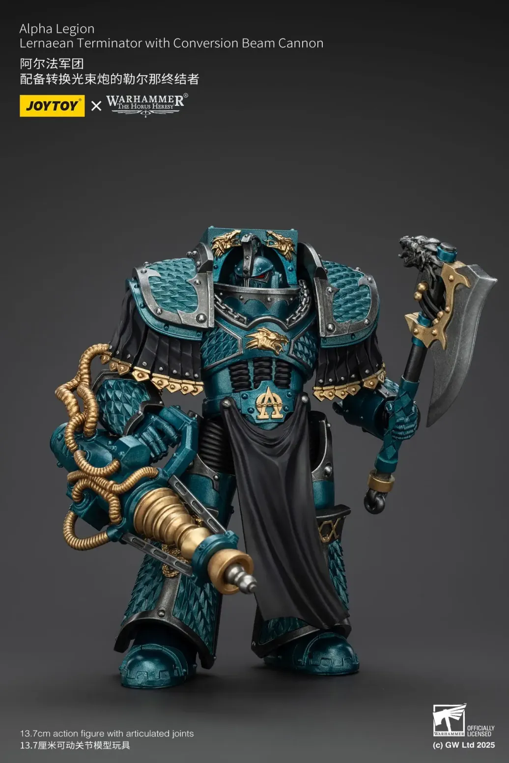 Zum Tabletop-Spiel "Warhammer The Horus Heresy" kommt diese detailreiche, bewegliche Actionfigur. Sie ist ca. 20 cm groß und wird mit weiterem Zubehör geliefert.