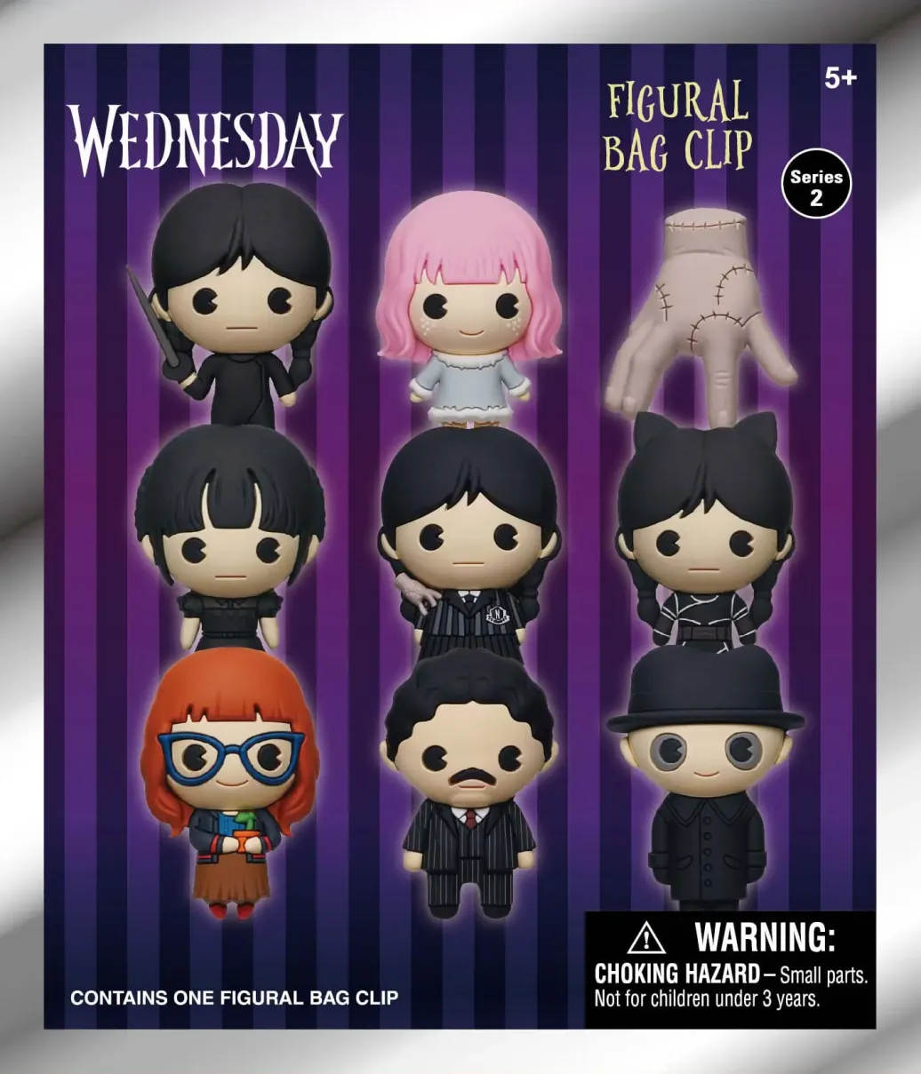 Display mit 24 Blind Bags mit je einem offiziell lizenzierten Taschenanhänger aus PVC.