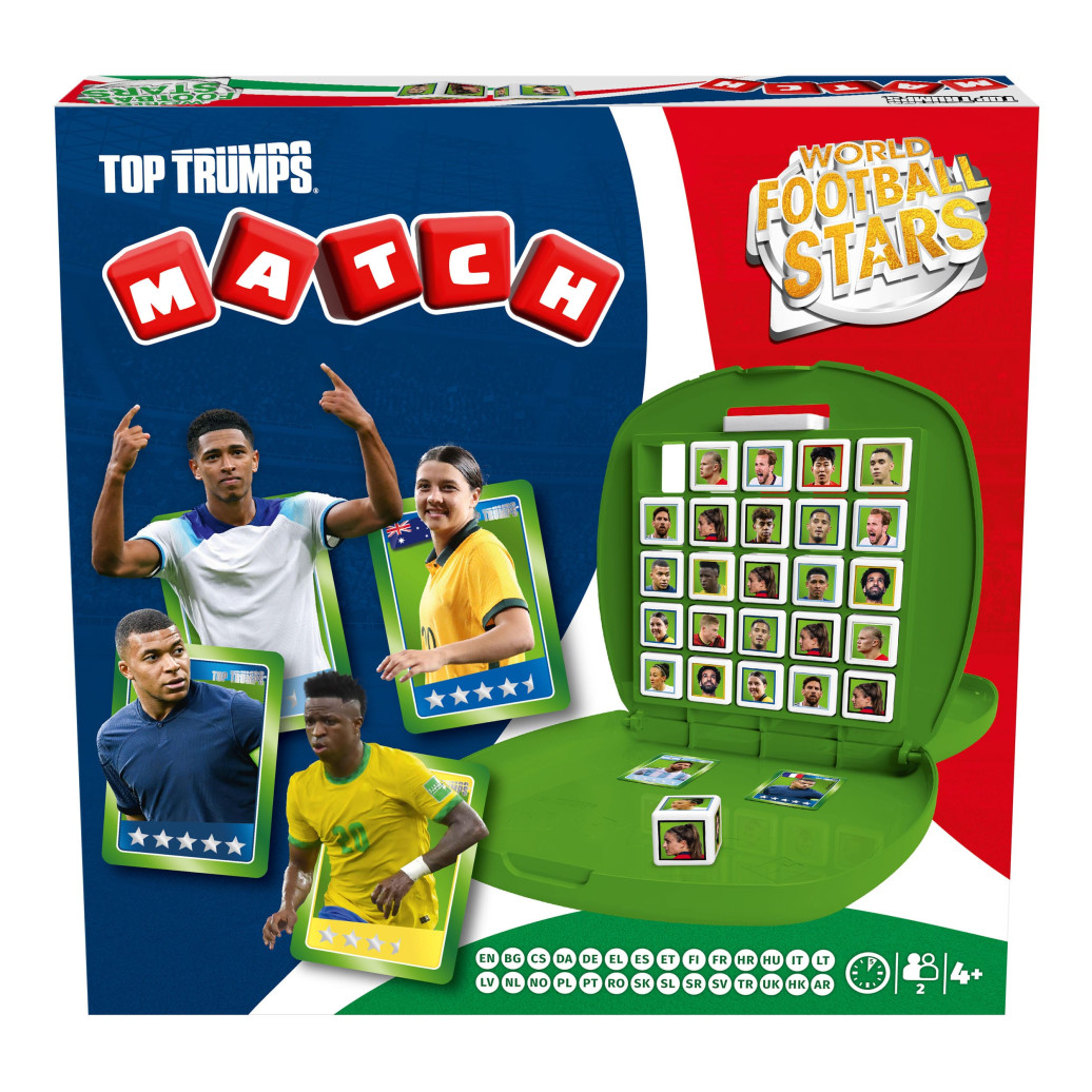 Die Spieler müssen 5 Würfel mit den Weltfussballstars in einer Reihe kombinieren, um Punkte zu sammeln. Diese können jedoch vom Gegner gestohlen werden! Egal, ob Zuhause oder unterwegs. Dank des wasserfesten Koffer-Designs überall spielbar.