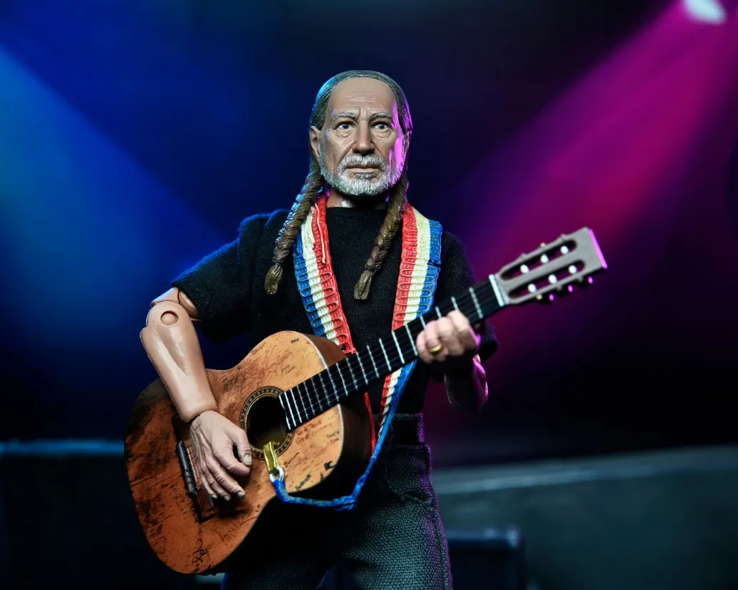Country-Legende Willie Nelson als detailreiche Actionfigur im Retro-Look. Sie ist ca. 20 cm groß, trägt echte Stoffkleidung und wird mit weiterem Zubehör in einer Blisterverpackung geliefert.