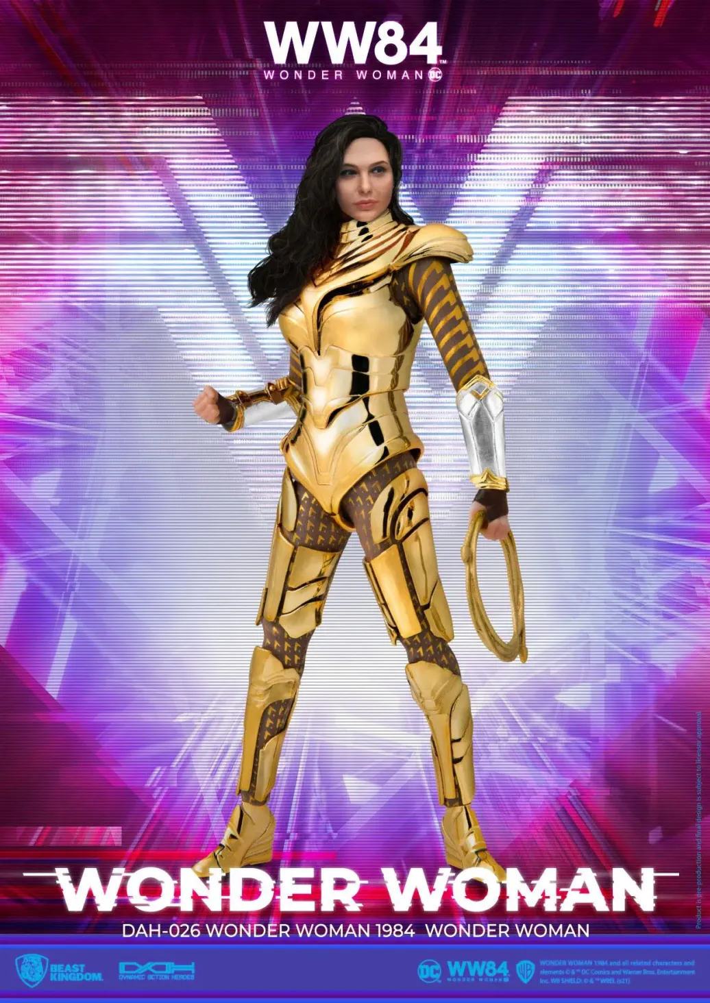 Zum DC Blockbuster "Wonder Woman 1984" kommt diese großartige Actionfigur im Maßstab 1:9 aus der "Dynamic 8ction Heroes" Serie von Beast Kingdom Toys. Sie ist ca. 21 cm groß und wird mit weiteren Austausch- und Zubehörteilen in einer bedruckten Box geliefert.