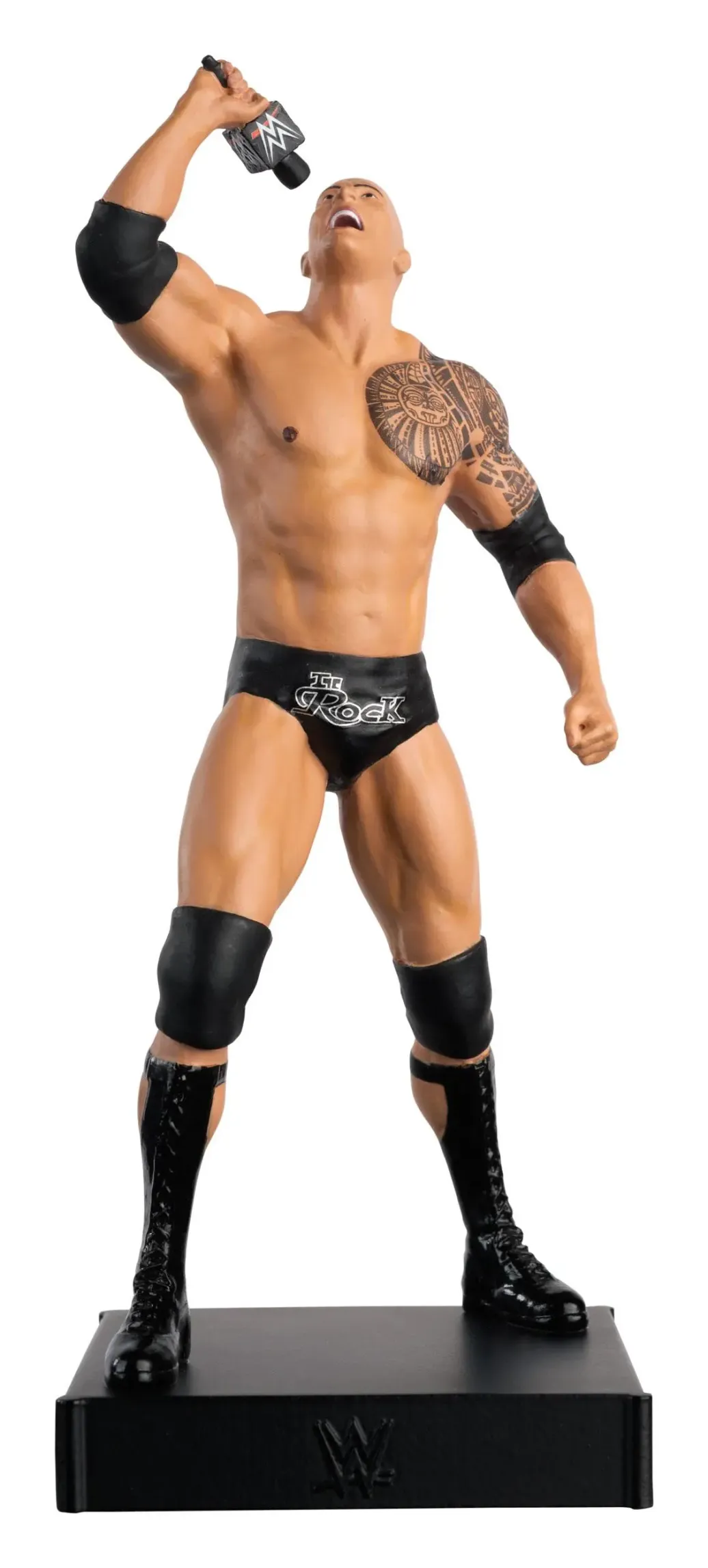 In der Reihe 'WWE Championship Collection' erscheinen in regelmäßigen Abständen detailreiche Resin-Figuren von Wrestlern der World Wrestling Entertainment Inc.. Die The Rock Figur im Maßstab 1:16 ist ca. 16 cm groß und wird in einer bedruckten Box geliefert. Mit dabei ist ein 12-seitiges Magazin mit Infos zur Person in englischer Sprache.