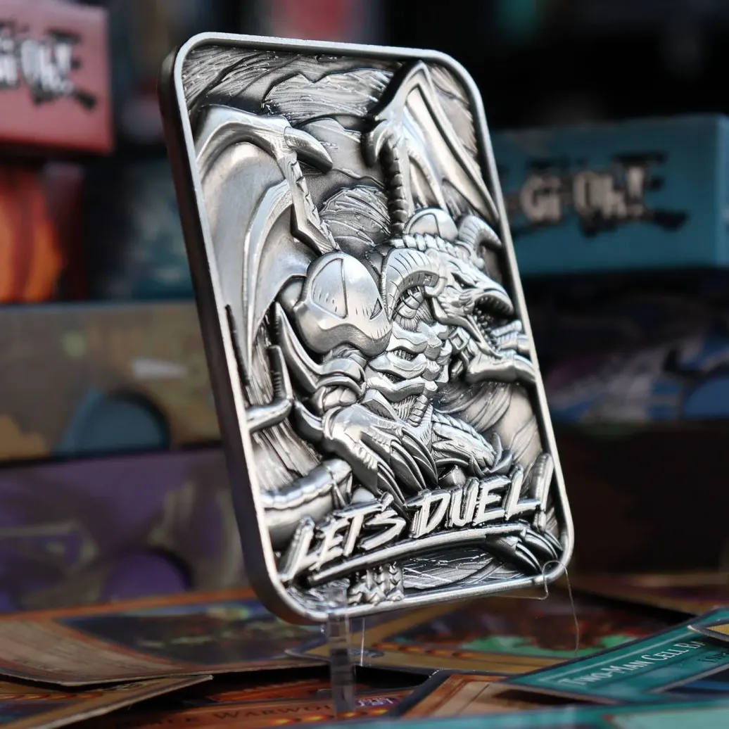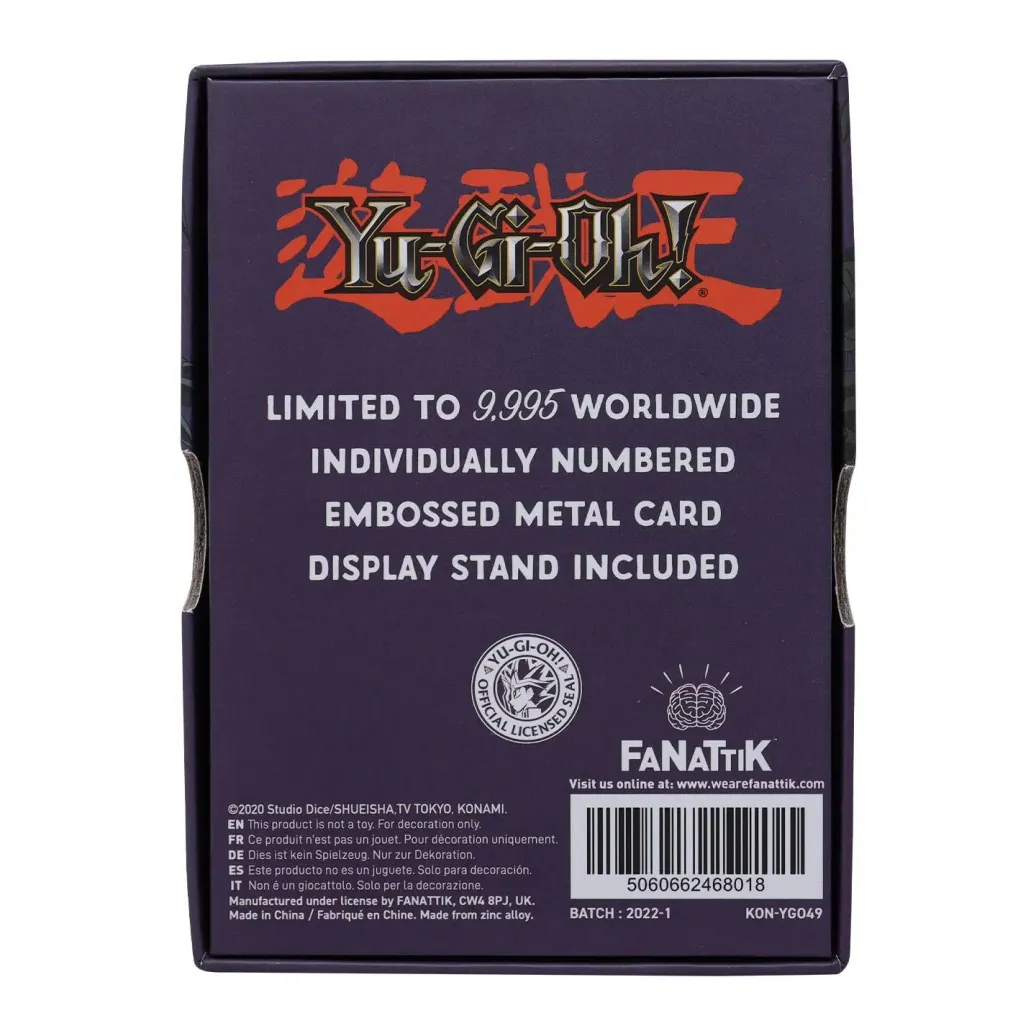 Offiziell lizenzierte Nachbildung einer Karte aus "Yu-Gi-Oh!". Das aus Metall hergestellte Sammlerstück ist 7,5 x 5 cm groß und wird in einer schicken Box geliefert.