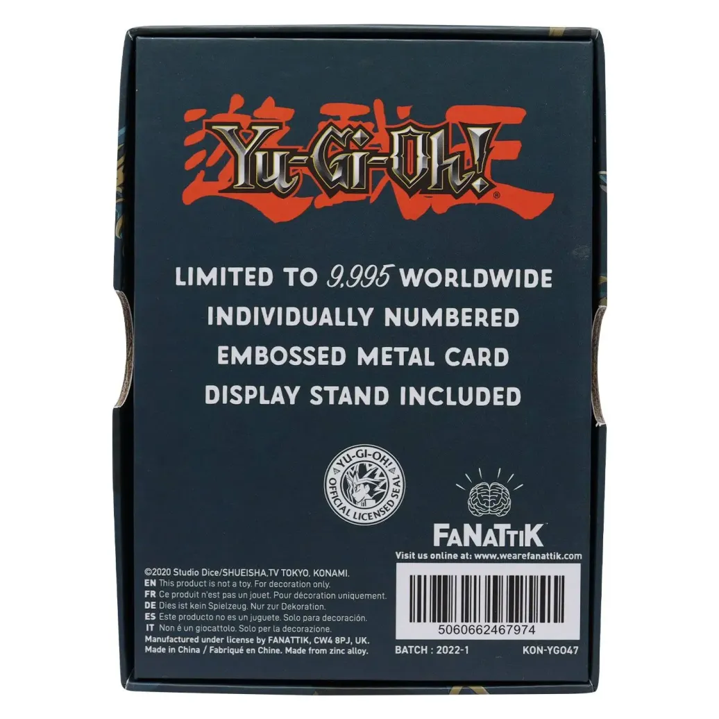 Offiziell lizenzierte Nachbildung einer Karte aus "Yu-Gi-Oh!". Das aus Metall hergestellte Sammlerstück ist 7,5 x 5 cm groß und wird in einer schicken Box geliefert.
