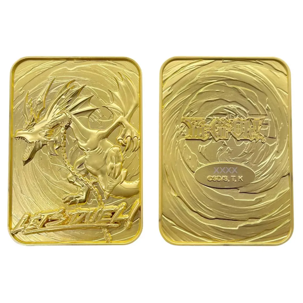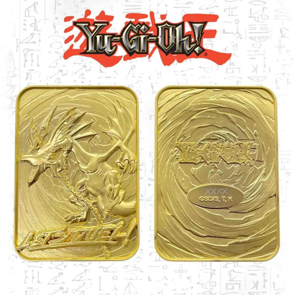 Offiziell lizenzierte Nachbildung einer Karte aus "Yu-Gi-Oh!". Das aus vergoldetem Metall hergestellte Sammlerstück ist 7,5 x 5 cm groß und wird in einer schicken Box geliefert.