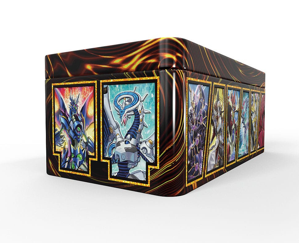 Der Umkarton enthält 12 Yu-Gi-Oh! Tin Boxen!
