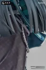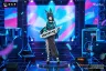 Auf einer neonbeleuchteten Bühne steht Hoshimi Miyabi im Zentrum von sich verflechtenden Schallwellen und Jubelrufen, ihre Fuchsohren sind auf jede Erschütterung des Rhythmus eingestellt. Das gestreifte Oberteil in Kombination mit metallisch lackierten Halsaccessoires strahlt eine intensive Bühnenpräsenz aus. Ein ruhiger, karierter langer Rock ist mit perlmuttfarbenen Schleifen verziert, während metallisch lackierte Knöpfe und Gürtelschnallen die Nieten-Netz-Details auf einer Seite widerspiegeln – Ordnung und Intensität koexistieren in perfekter Harmonie. Mit einer sanften Berührung ihrer Fingerspitzen prahlt die stromlinienförmige Keytar mit einer scharfen, hochmodernen Form, deren tiefblauer Perlmuttlack unter den Lichtern mit einem dezenten Glanz schimmert.