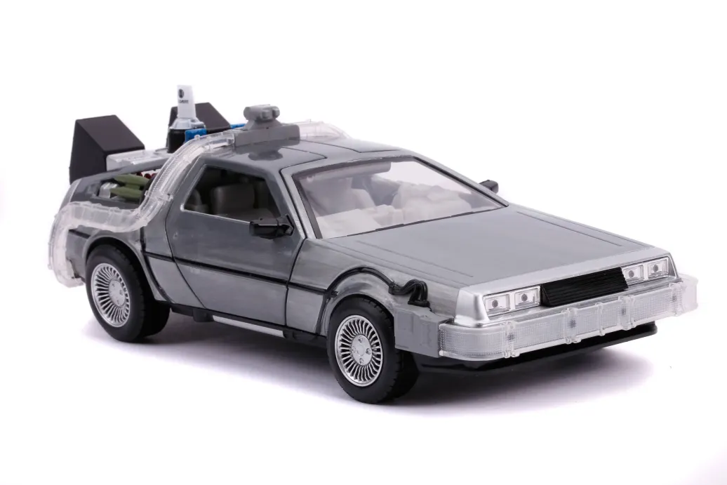 Zur legendaeren Film-Trilogie Zurück in die Zukunft kommt dieses grossartige Modell des De Lorean, der in eine Zeitmaschine umfunktioniert wurde. Das Modellauto aus Metall ist eine detailgetreue Nachbildung des Originals im Maßstab 1:24 und wird in einer Fensterbox geliefert.