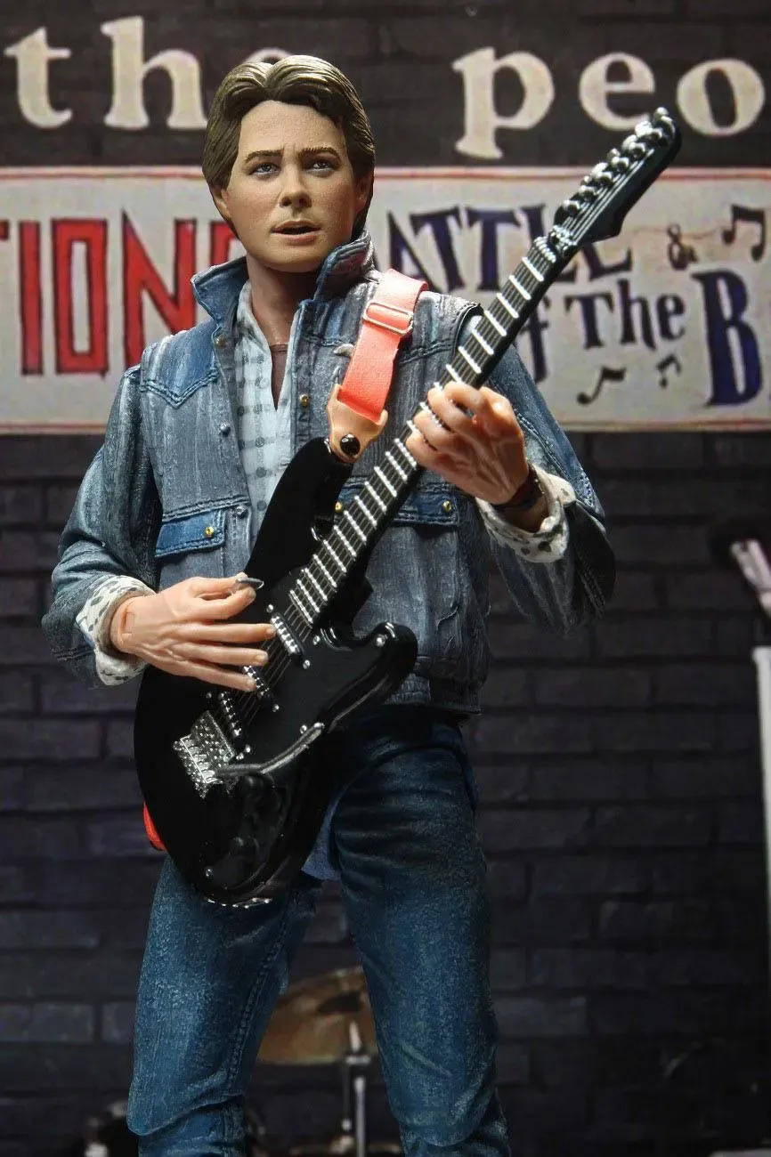 Aus Zurück in die Zukunft kommt diese coole Marty McFly Audition Actionfigur. Sie ist ca. 18 cm groß und wird mit weiterem Zubehör und austauschbaren Teilen in einer Fensterbox geliefert.